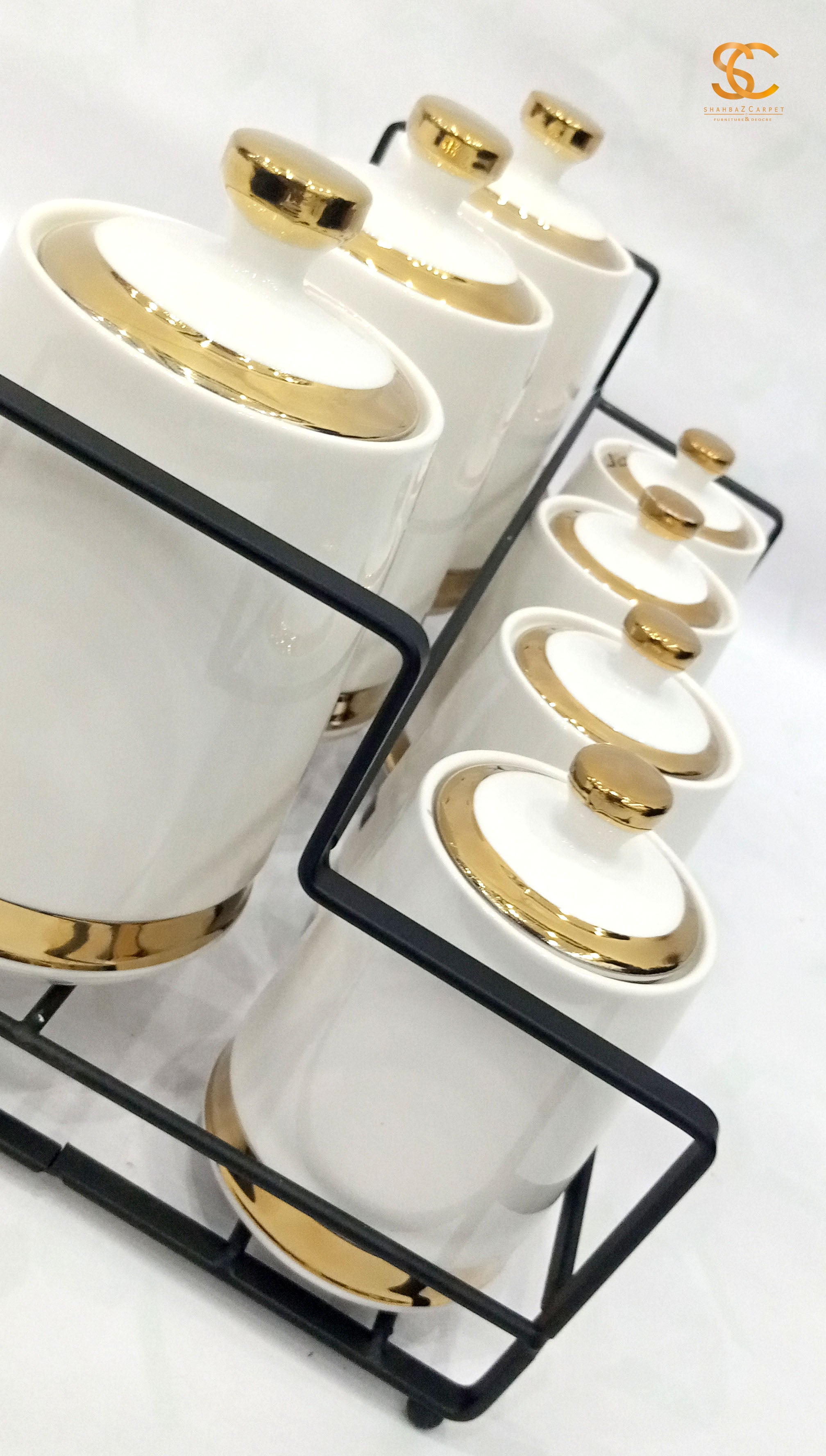 At Shahbaz Carpet Mall, we bring you an elegant and functional 7-piece bone china spice jar set, designed to keep your kitchen organized while adding a touch of sophistication. Perfect for everyday use, this set is both practical and stylish.