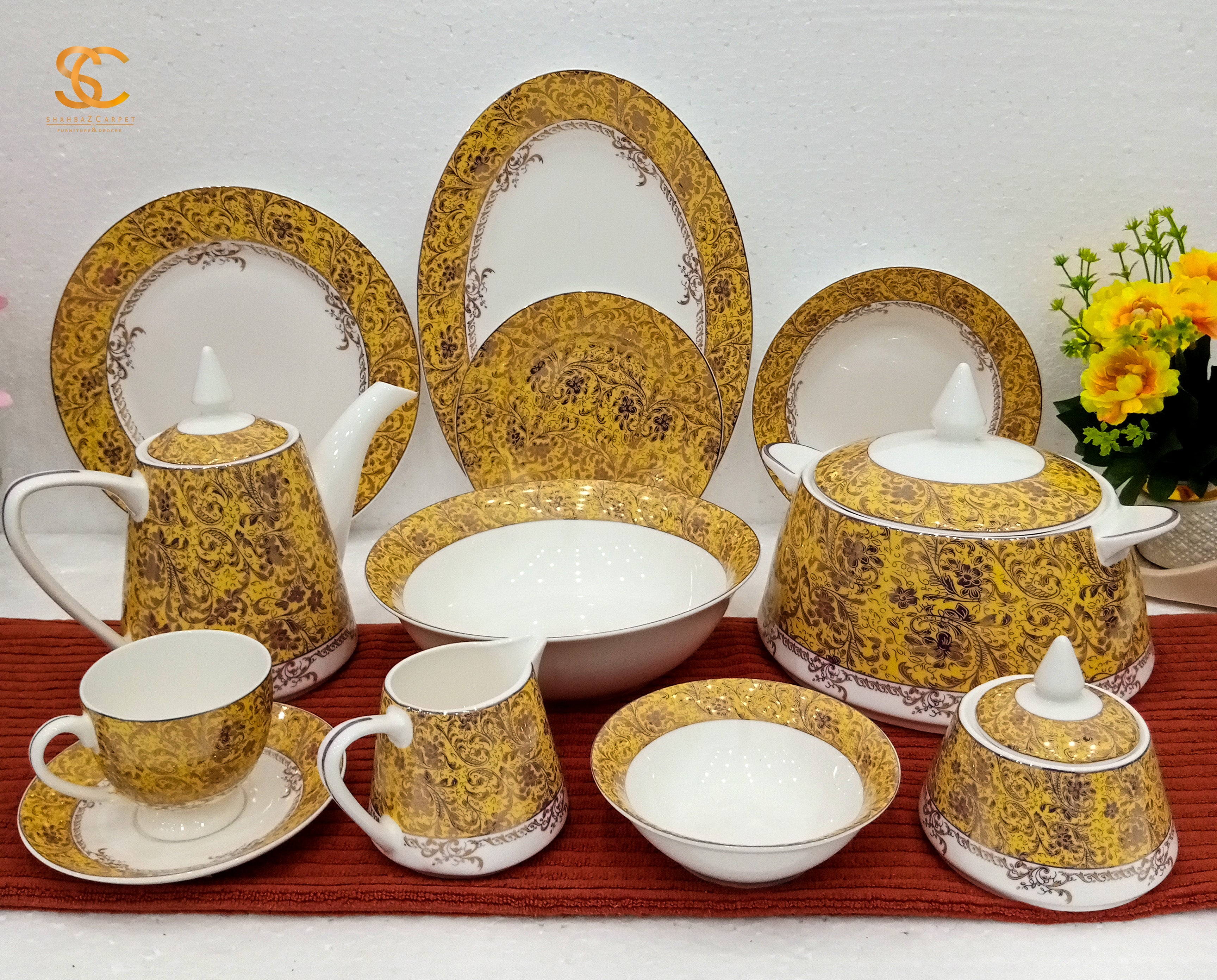 Discover the perfect blend of elegance, strength, and timeless beauty with our exclusive 61-piece Bone China Dinner Set, available only at Shahbaz Carpet Mall. This luxurious dinner set is designed to enhance every meal, whether it's a casual family dinner or a sophisticated dinner party.