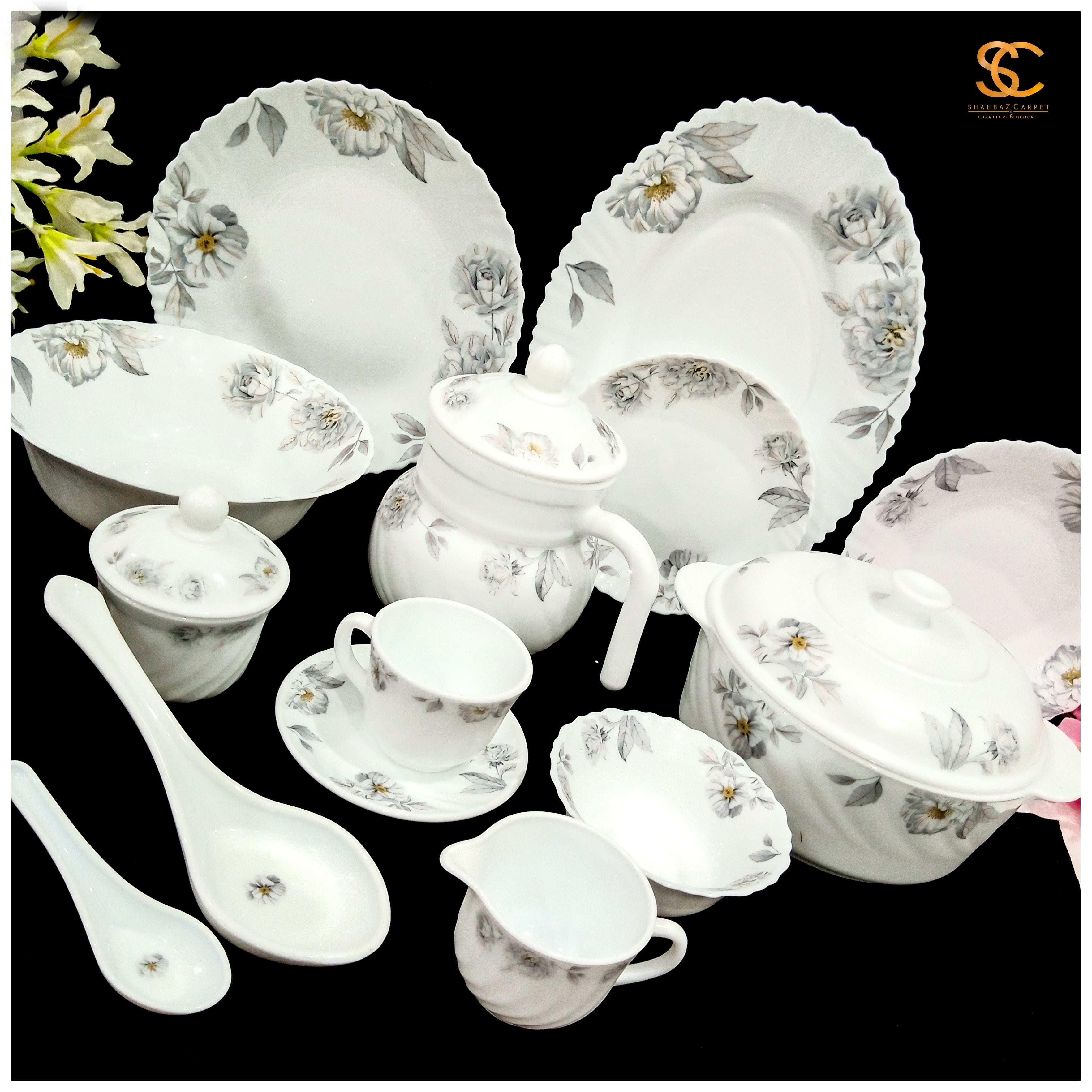Discover the perfect blend of elegance, strength, and timeless beauty with our exclusive 61-piece Bone China Dinner Set, available only at Shahbaz Carpet Mall. This luxurious dinner set is designed to enhance every meal, whether it's a casual family dinner or a sophisticated dinner party.